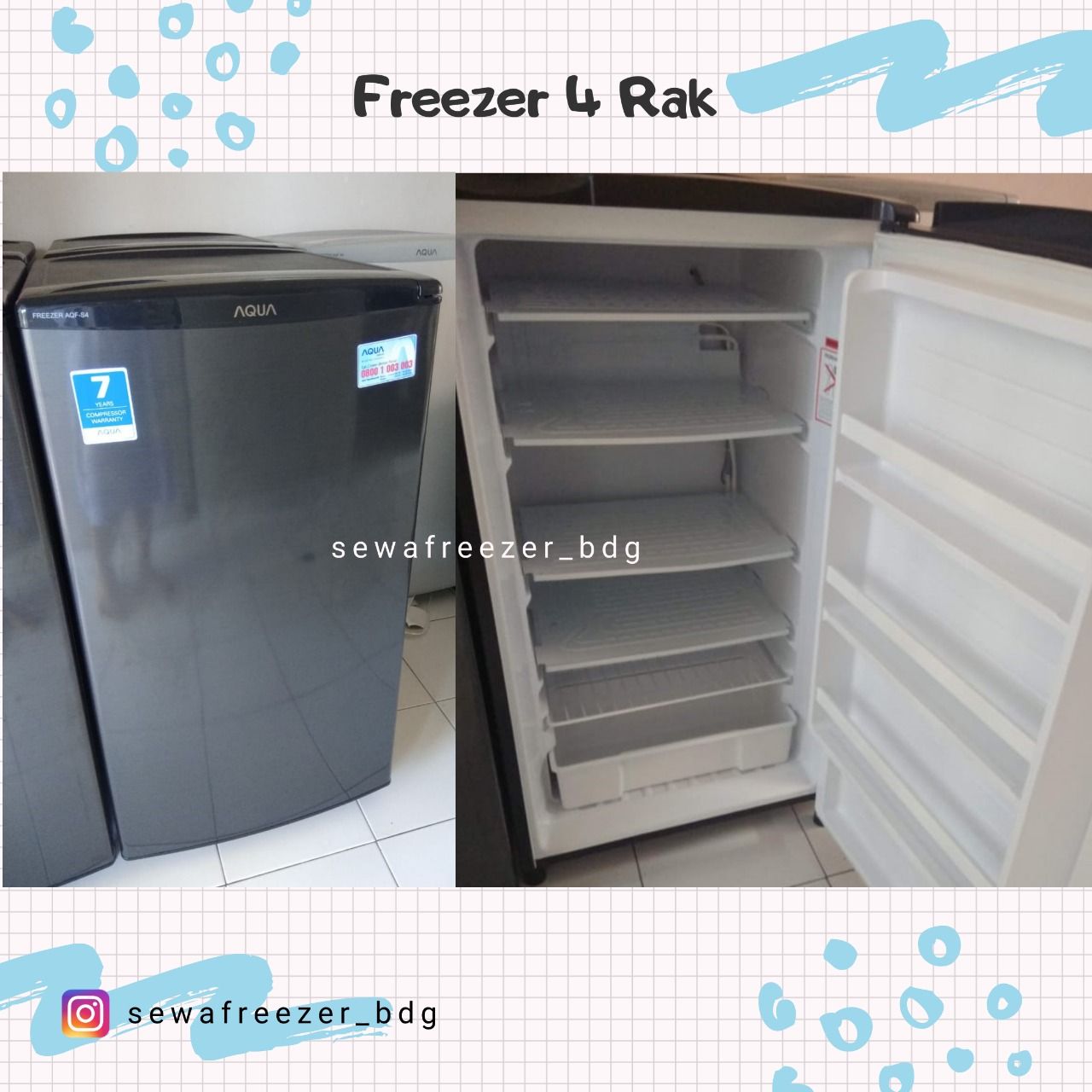 Freezer 4 rak Kapasitas 120 Liter (140-180 botol @130ml) daya 100 - 150 watt..